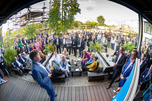 Rund 300 Gäste des AUMA feierten am 25. Mai in der Strandbar BeachMitte das Engagement der Messewirtschaft. Ehrengast Michael Kellner, Parlamentarischer Staatssekretär im BMWK, hielt die Keynote.