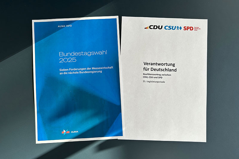 Der AUMA hat den am 9. April vorgelegten Koalitionsvertrag von Union und SPD entlang der gemeinsam mit den Mitgliedern entwickelten AUMA-Forderungen an die nächste Bundesregierung ausgewertet. Das Ergebnis ist erfreulich: Zahlreiche Forderungen der Messewirtschaft wurden von den künftigen Koalitionspartnern aufgegriffen.